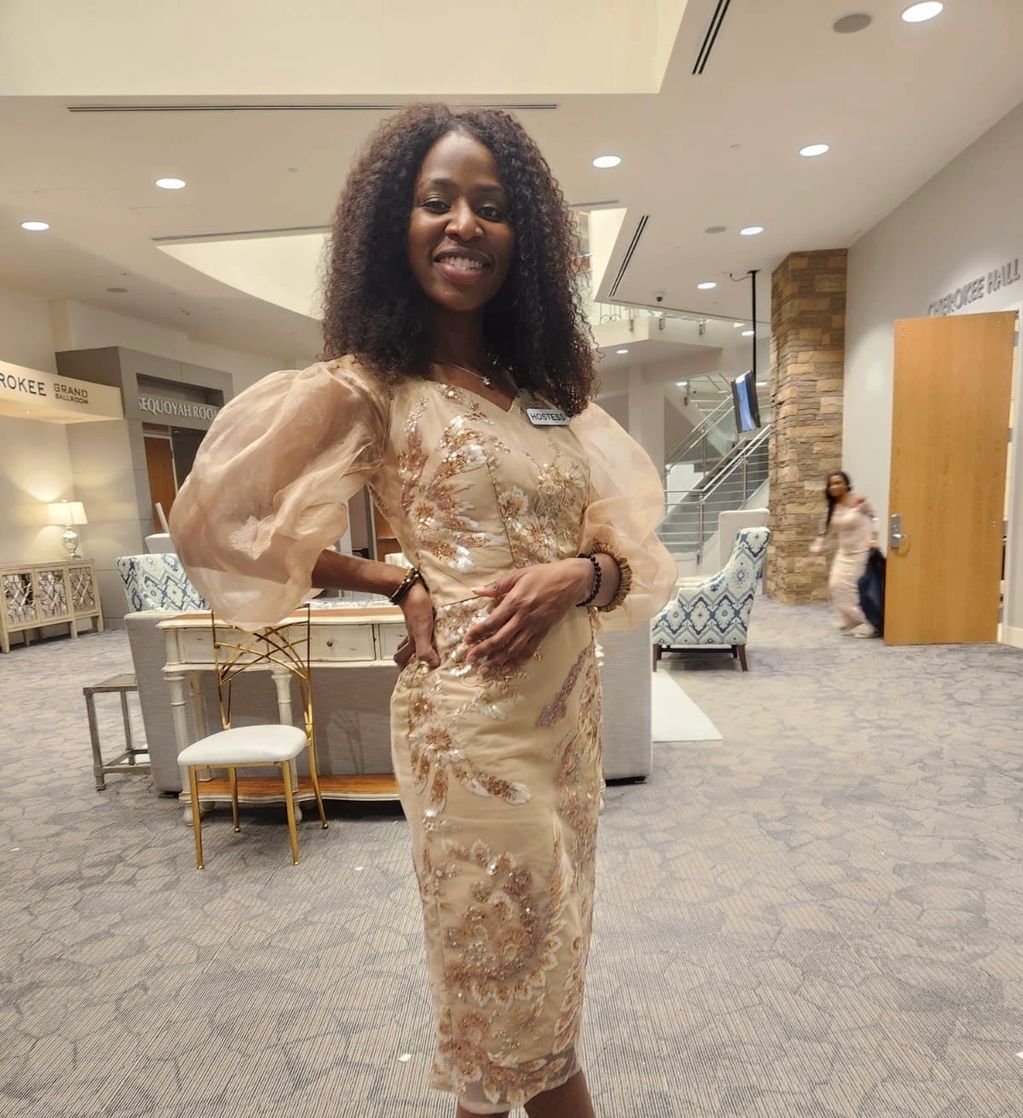 Bridesmaid adorned in our custom-made fabrics and asooke for a wedding.